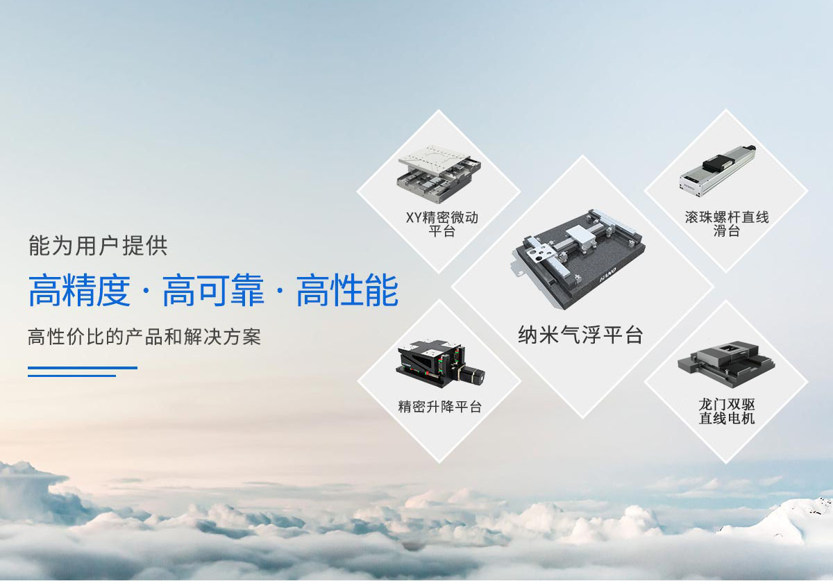 氣浮平臺(tái)采用高阻尼、高剛性(氣浮剛度可達(dá) 150N/um) 氣浮模塊,氣浮面材質(zhì)為陶瓷及天然 大理石(極小的變形量及膨脹系數(shù))。動(dòng)力源采用 直驅(qū)電機(jī),極佳的速度鏈波,能有效抑制外界對(duì)氣浮平臺(tái)的干擾。